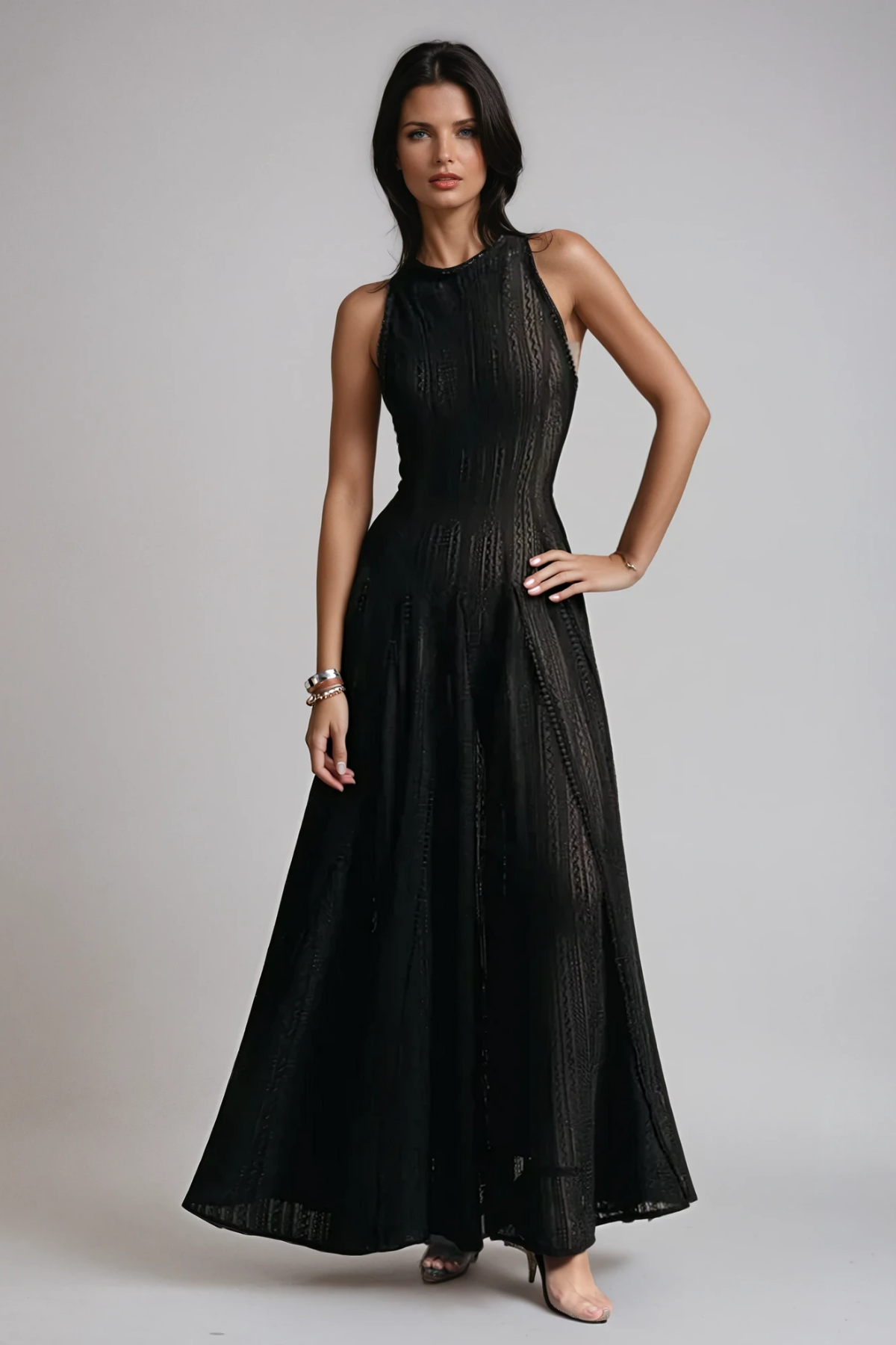 Annelise Kolsuz Kesik Uzun Elbise Siyah