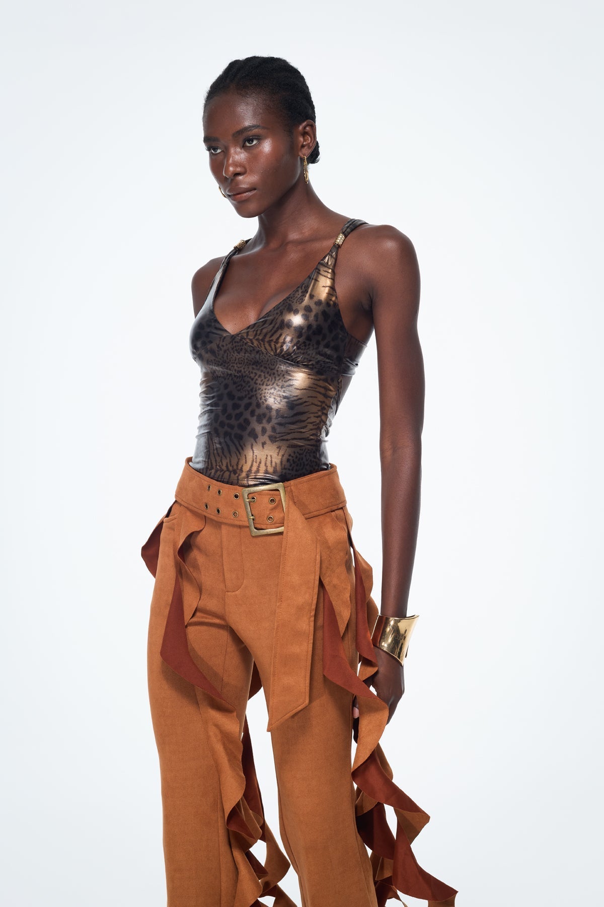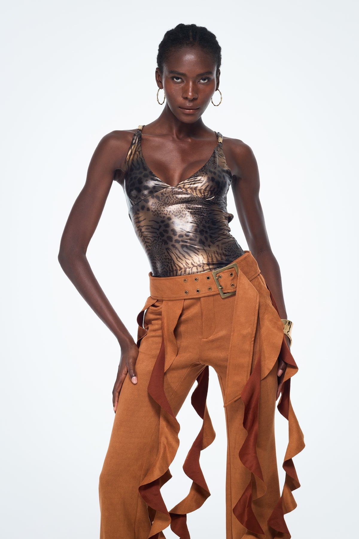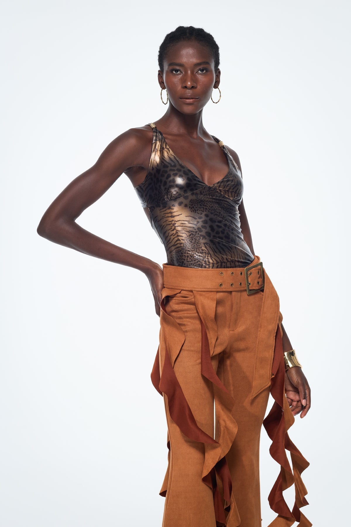 Bakari Leopar Sırtı Açık Vücuda Oturan Üst