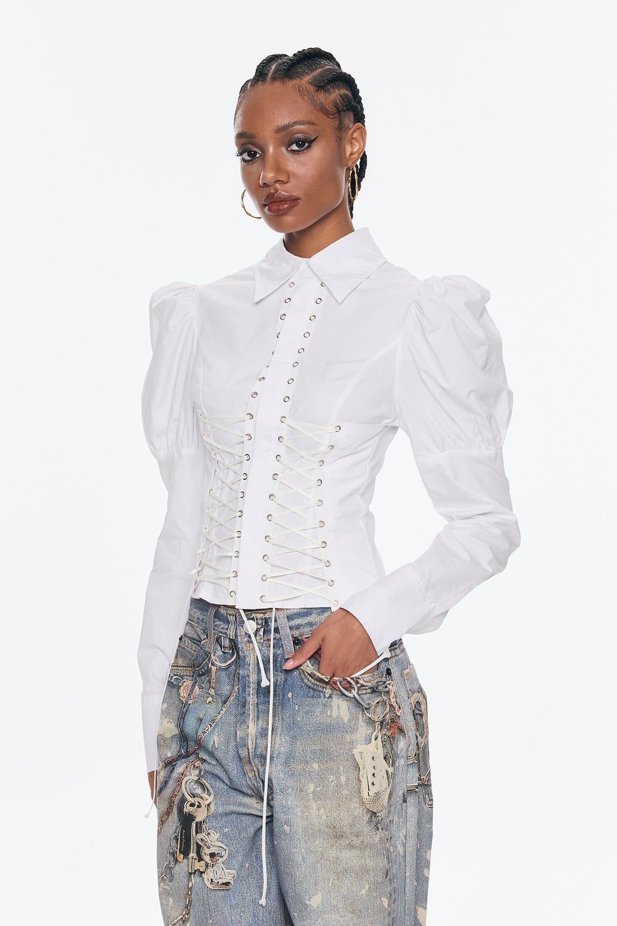 Belvedere Bağcıklı Puf Kollu Beyaz Üst