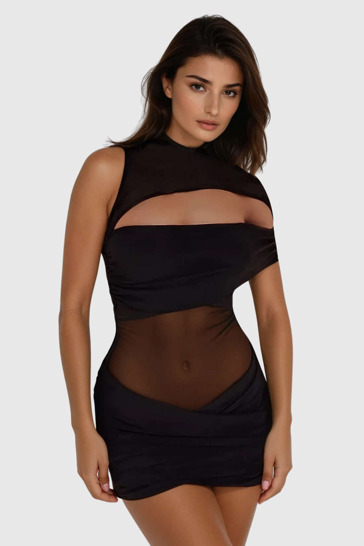 Bernhard Cutout Tek Omuz File Mini Elbise Siyah