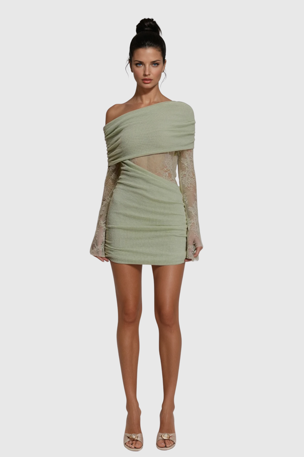 Dagrun Örgü Dantelli Dantel Mini Elbise